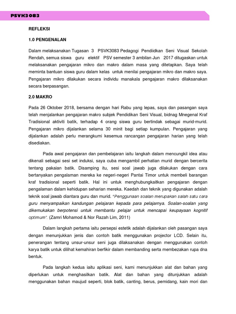 Doc Contoh Refleksi Zalina Razali Academia Edu
